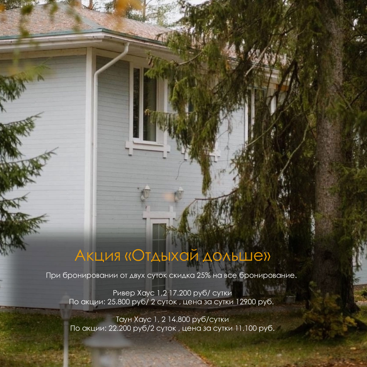 Акция "Отдыхай дольше" на базе отдыха Vyritsa Village.